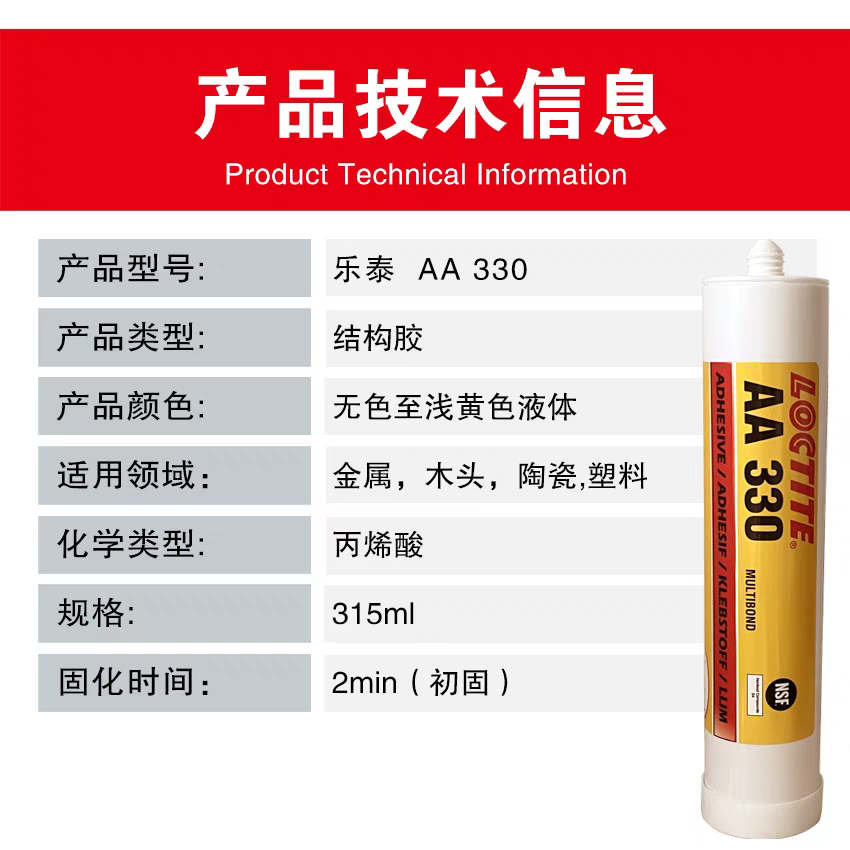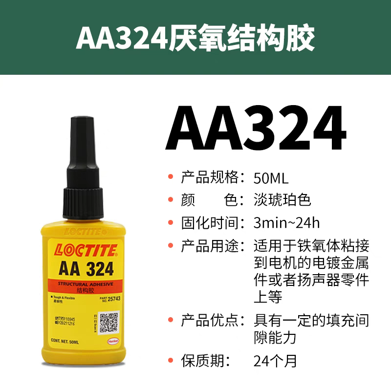 乐泰AA326胶水332结构胶粘马达磁铁金属324黄胶7649促进剂50ML 1L
