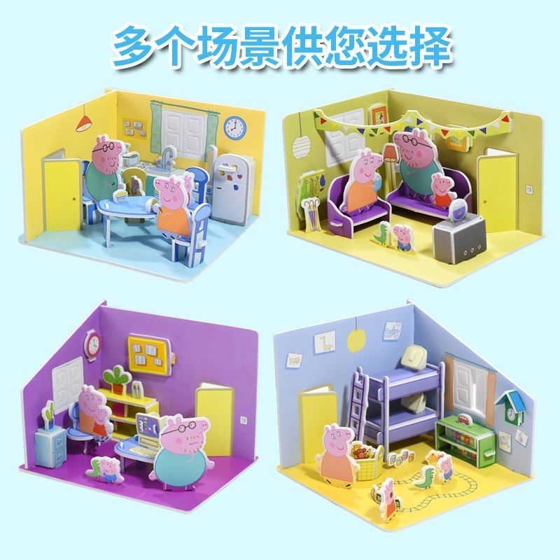小猪佩奇立体拼图3D儿童益智早教启蒙玩具男女孩DIY手工房子模型3456岁幼儿园宝宝玩具书游戏找不同折纸剪纸动物认知正版趣味成长
