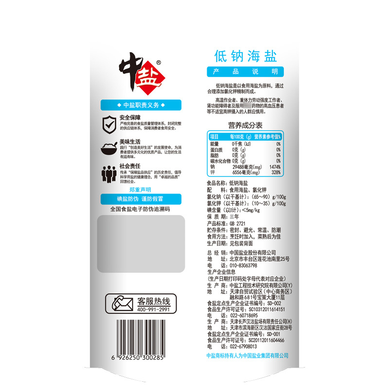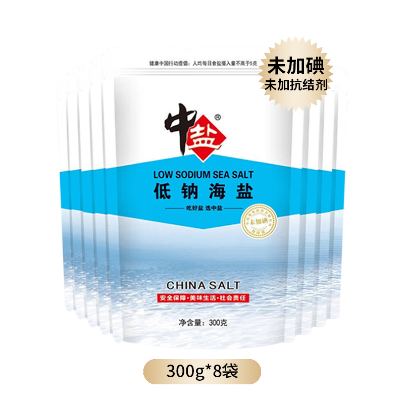 低钠盐未加碘低钠海盐300g3中盐无抗结剂食用盐家用8袋无碘添加