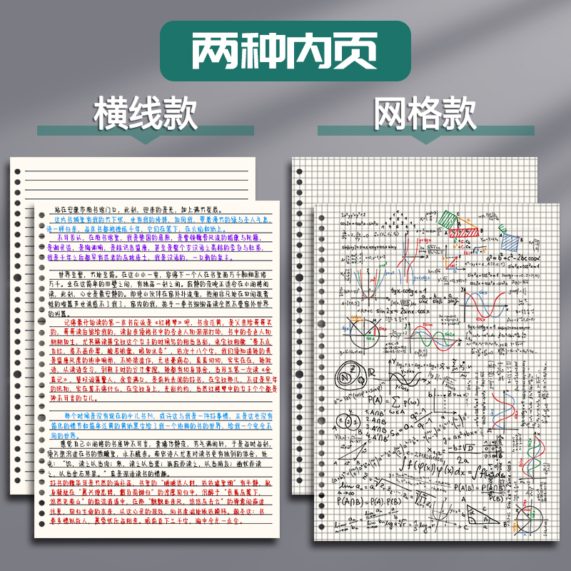 晨光活页本B5横线笔记本子A4方格网格记录本A5多规格可拆卸替芯软壳考研线圈错题本加厚纸张不咯手活页夹高中
