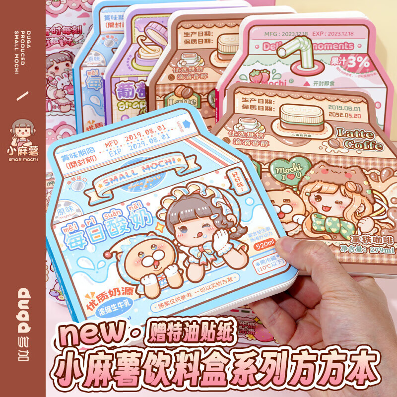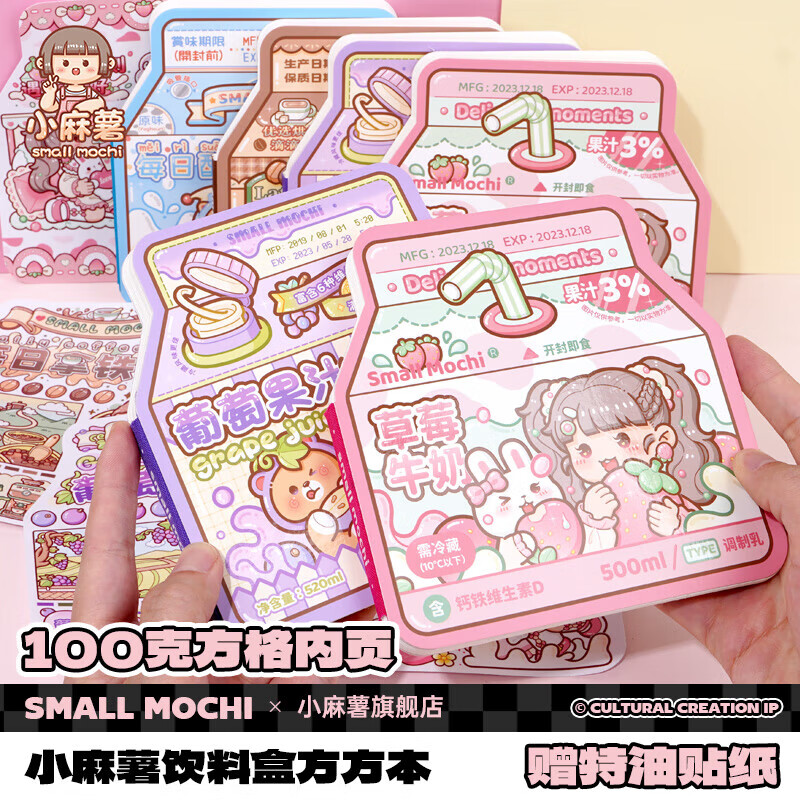 小麻薯新品饮料盒系列酸奶果汁异形方方本手账本小学生笔记本手账贴胶带贴纸方格内页本女孩送闺蜜生日礼物