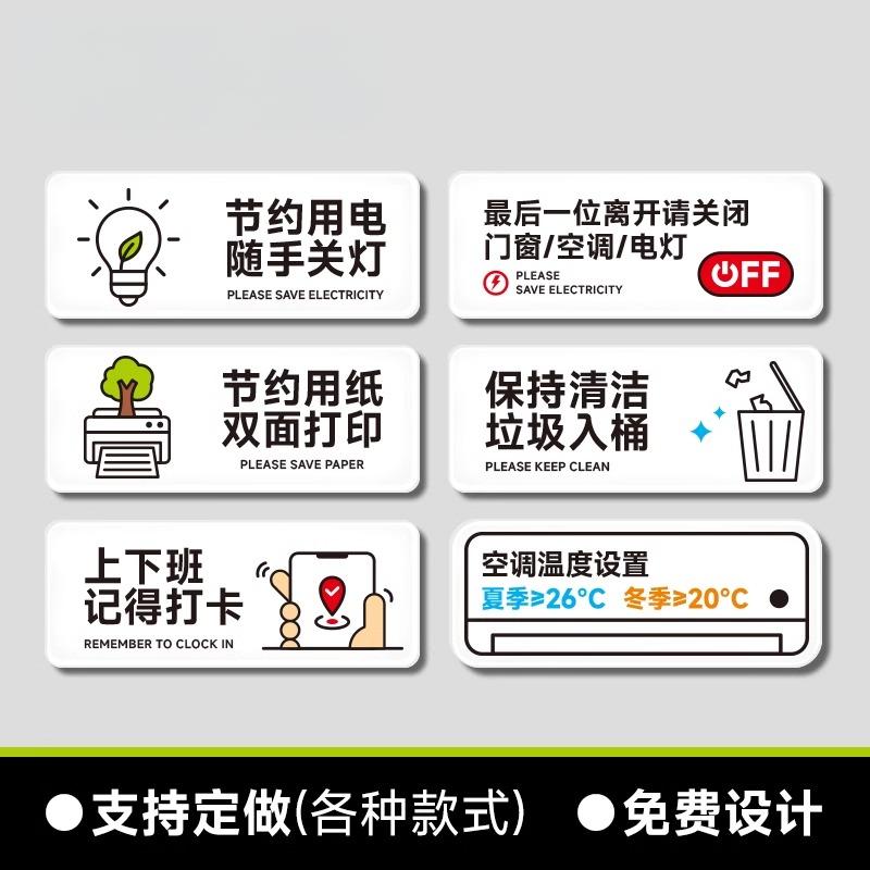 标识定制节约用电用水标示温馨提示牌上下班记得打卡空调温度节能