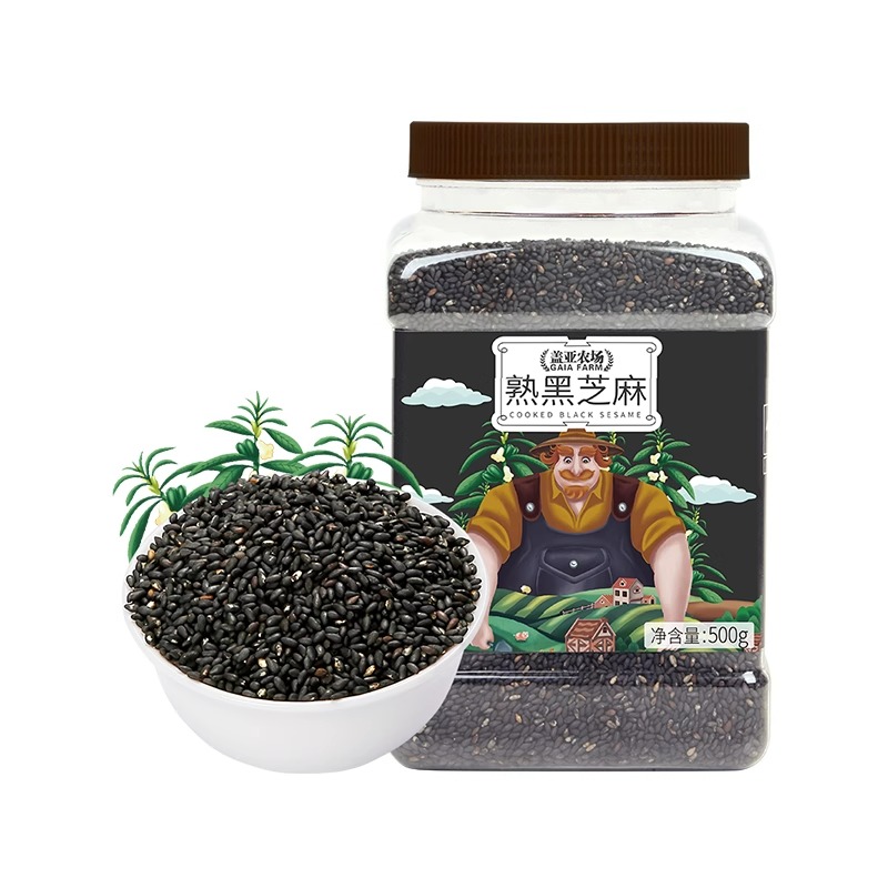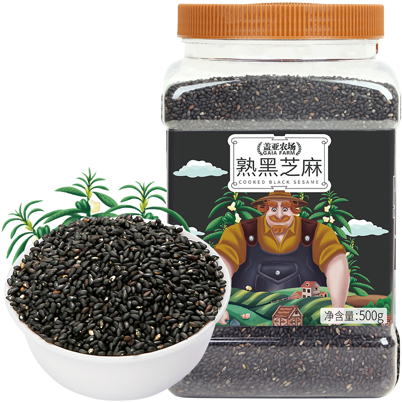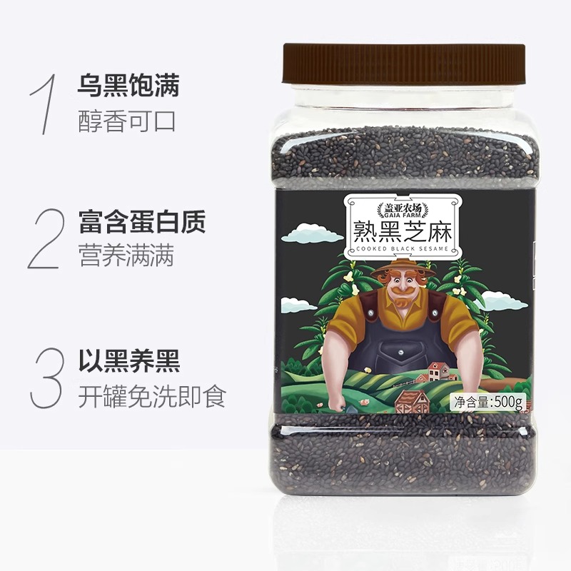 盖亚农场熟黑芝麻500g东北炒农家自产免洗即食烘焙黑芝麻五谷杂粮