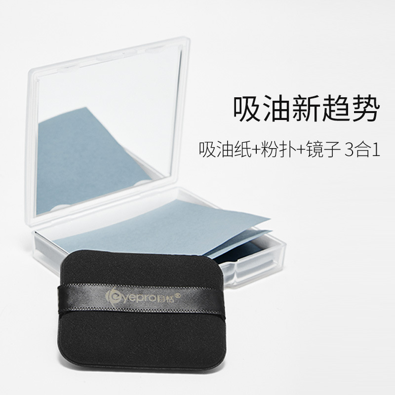 吸油纸面部带镜子粉扑三合一劲爽竹炭强力去油控油面纸便携男女