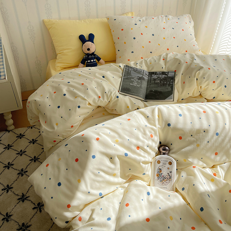 ins彩色点点四件套水洗棉被套非全纯棉床单人学生宿舍床上三件套4