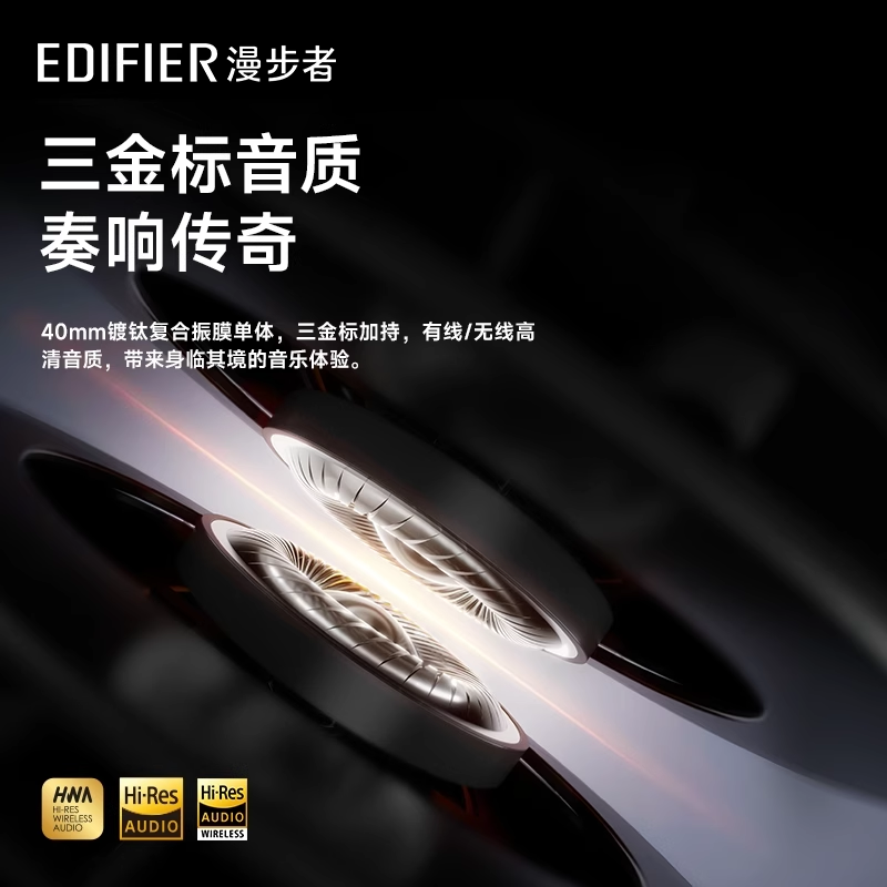漫步者W820NB三金标耳机头戴式无线蓝牙主动降噪运动游戏电竞音乐