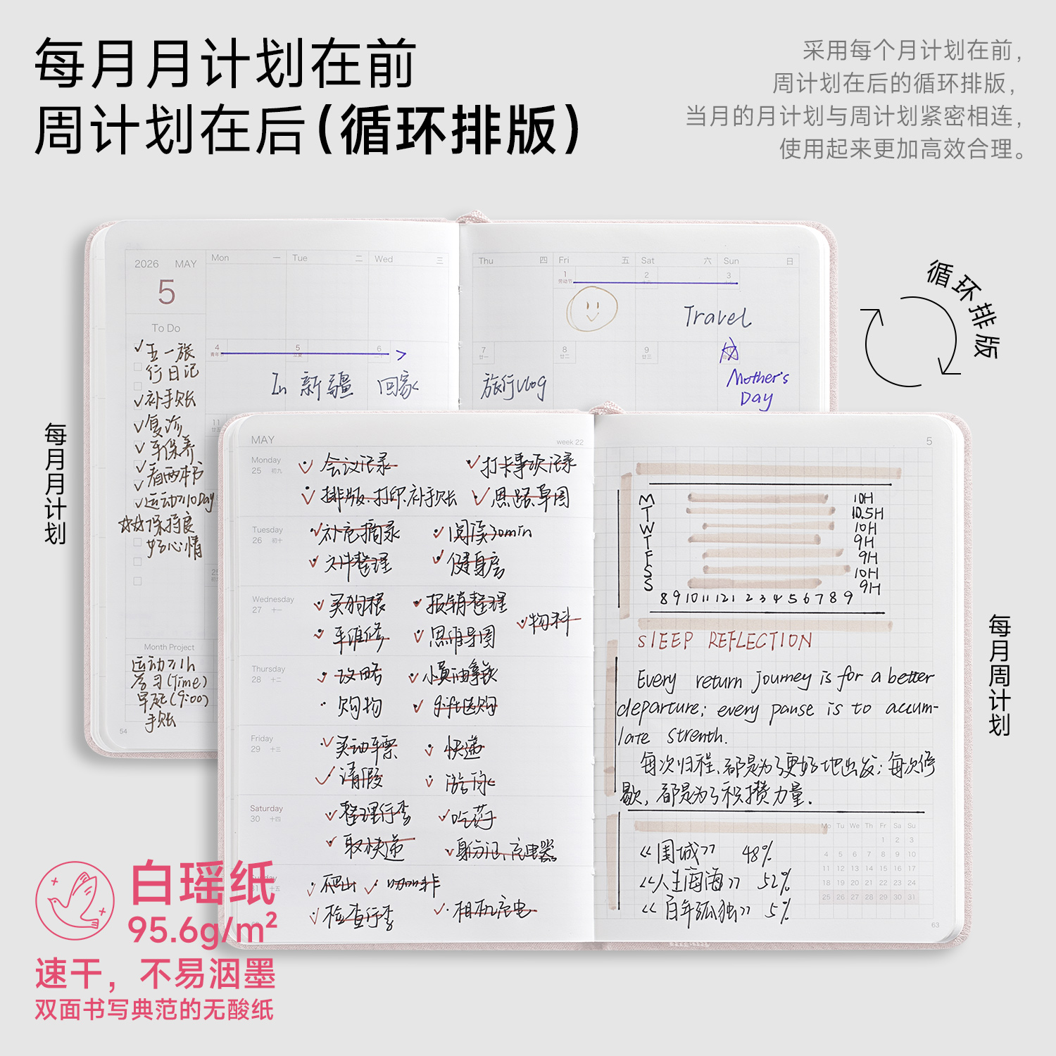 马卡龙A6特种纸手帐本一周一页日程本2026效率手册周计划盐系周记口袋小巧自律打卡笔记本日历365天手账定制