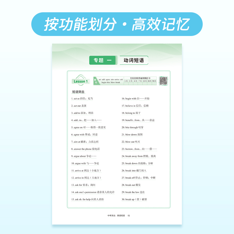 初中英语常考短语与句型中考核心短语例句写作句型知识点大全 英语单词词组固定搭配阅读训练练习题便携随身