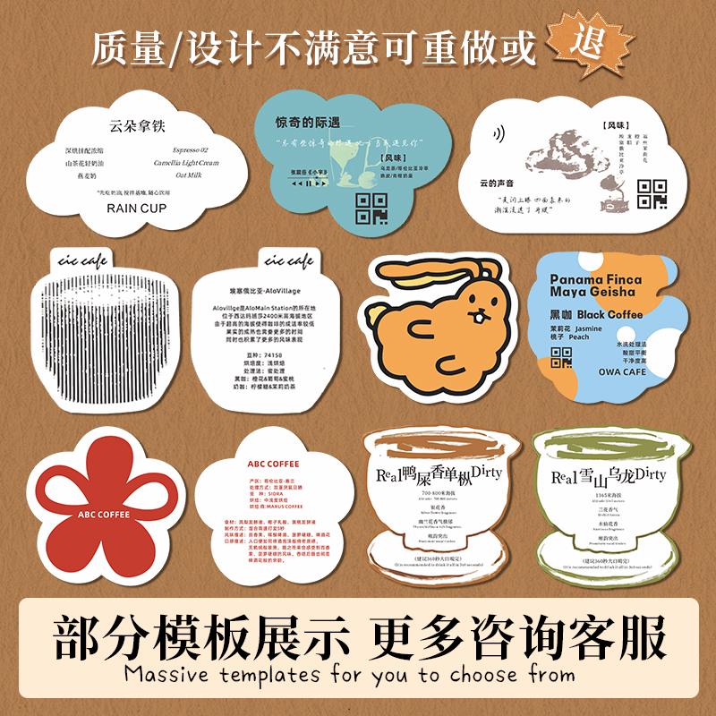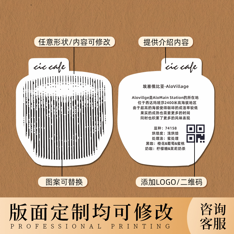 异形咖啡卡片定制特调风味咖啡豆手冲泡介绍装饰小卡设计产品牌配方饮料售后说明信片烘焙提示硬卡纸打印刷