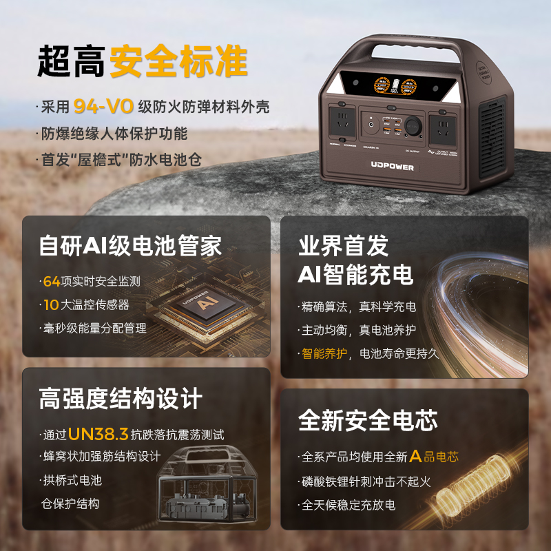 有电储能UDPOWER户外电源露营电源0.6度户外移动电源220V便携蓄电池停电备用电源车载大容量充电宝