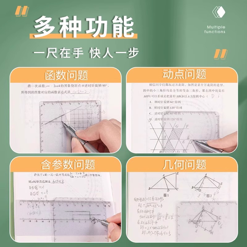 【威震四方格尺】初中考数学四支打孔四方尺函数几何多功能尺子初高中生绘图可擦坐标系抛物线动点分析解题尺