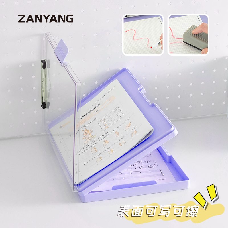 侧开双层透明A4文件夹多功能写字垫板小学生作业试卷收纳资料夹档