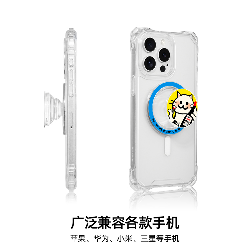 原创猫咪手机磁吸支架通用新款magsafe强力吸附不掉可爱可替换气囊磁力圈背贴360度旋转啪嗒固定桌面追剧