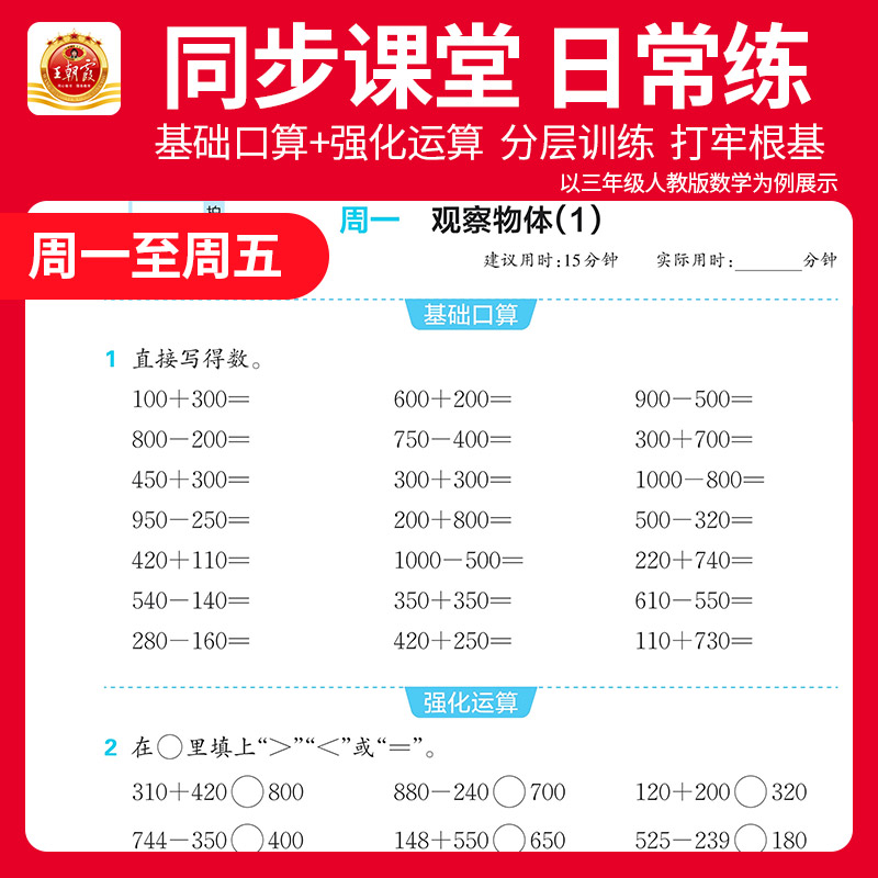 2025秋王朝霞口算小达人一二三四五六年级上下册人教版苏教北师版小学数学同步训练加减乘除混合运算速算计算训练一课一练口算题卡