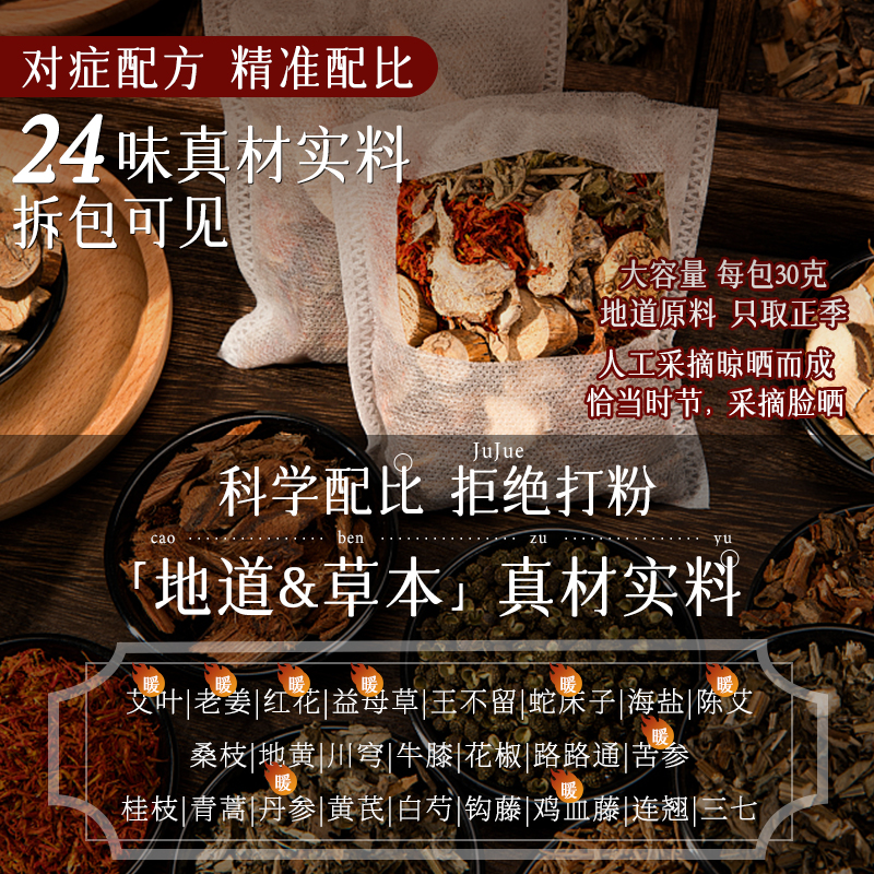 左左女泡脚药包湿气艾叶生姜祛寒足浴包去男女士助睡眠发汗超大包