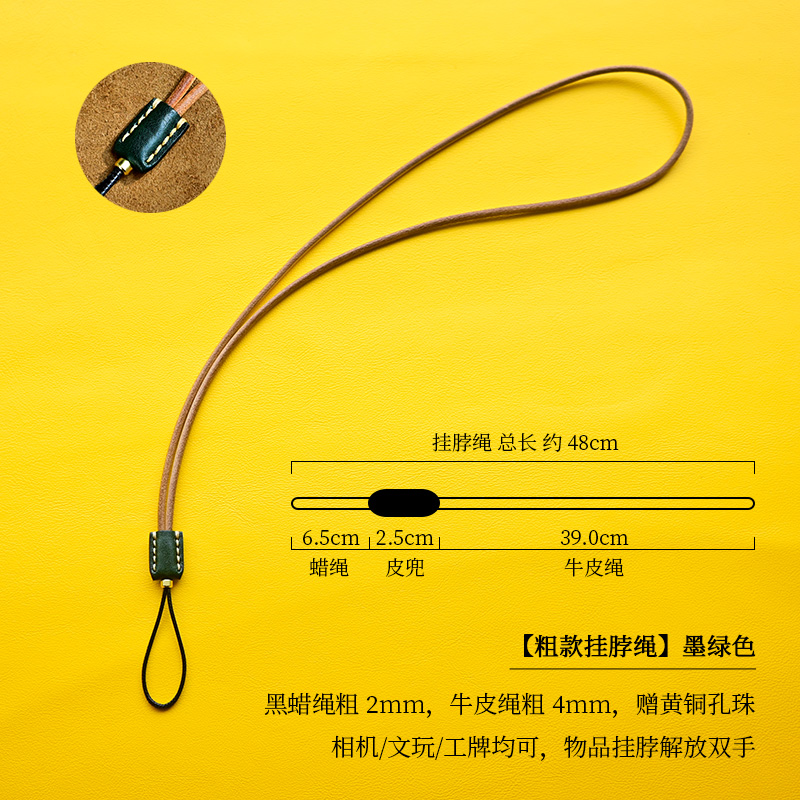 粗款相机挂脖绳 手工头层真牛皮绳防丢平安扣玉佩文玩绳数码配件