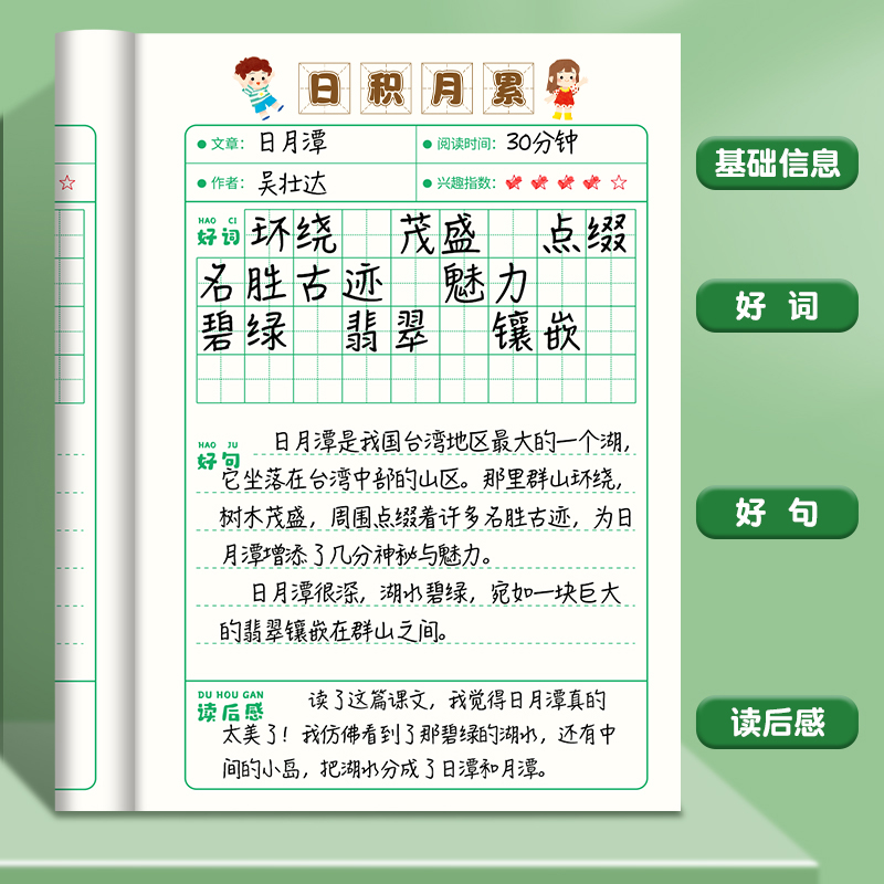 日积月累本好词好句摘抄本阅读记录卡专用本二年级上册小学生三年级读书笔记词语积累本语文摘记本课外读后感