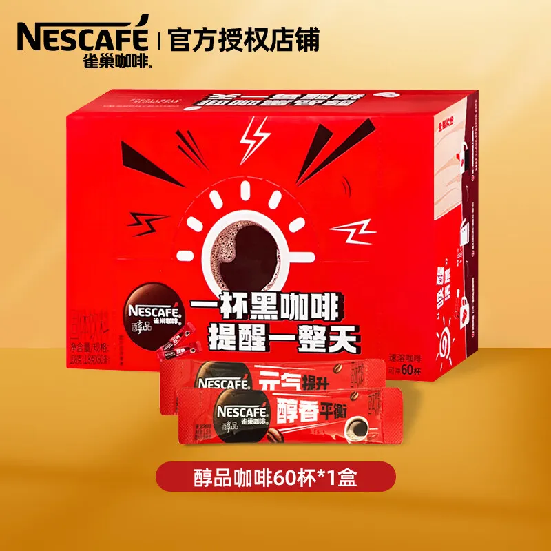 雀巢咖啡醇品美式黑咖盒装0蔗糖速溶咖啡粉冲泡熬夜提神健身搭档