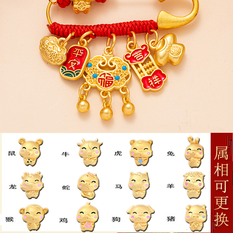 精致沙金别针婴儿金饭碗压惊龙兔宝宝护身符挂件外出安全孕妇平安