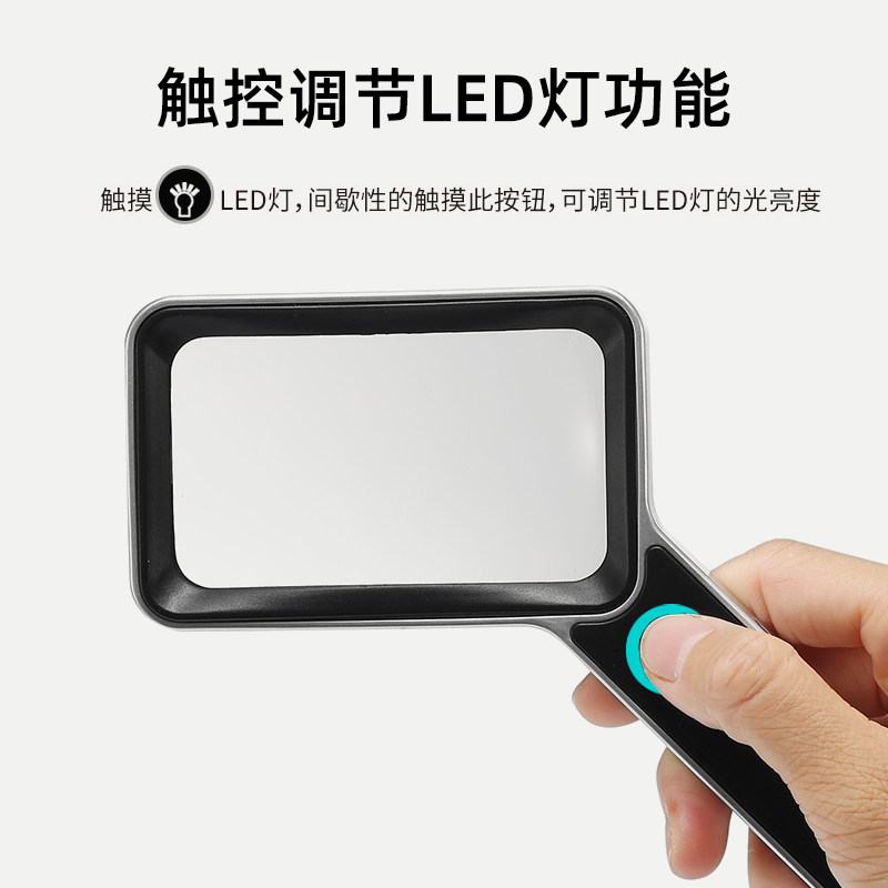 一眸 日本30倍方形非球面放大镜 高清高倍手持式带LED灯触碰式开关60 儿童学生老人阅读100可充电放大镜1000