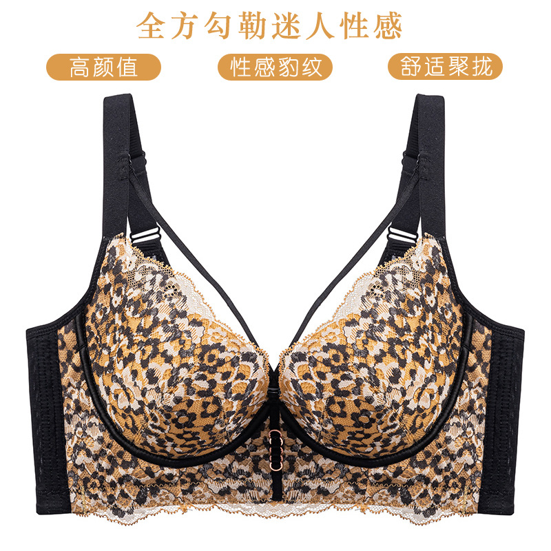 美容院防滑文胸性感豹纹内衣女聚拢上托防下垂收副乳美容院调整型