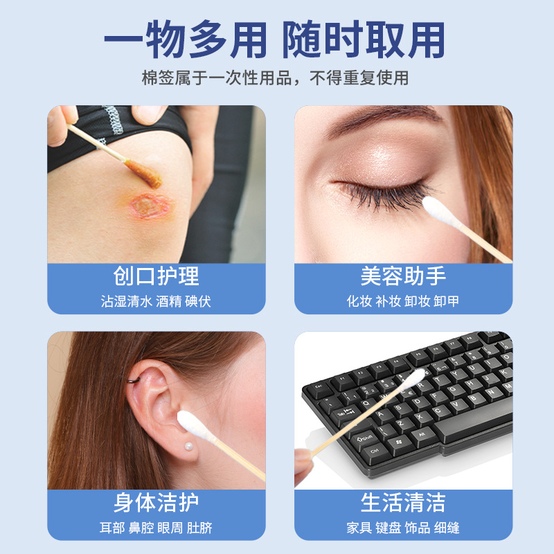 医用级双头棉签竹棒一次性小头棉花棒美容掏耳朵皮肤创面清洁护理
