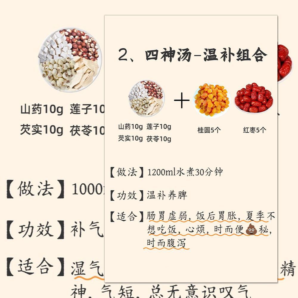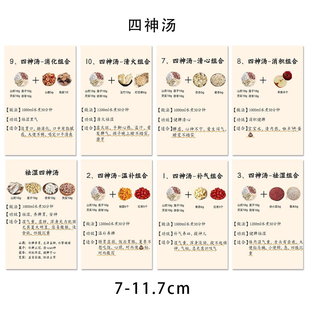 36大张中医养生四神汤贴纸补阳气祛寒湿健康食疗调理知识笔记贴画