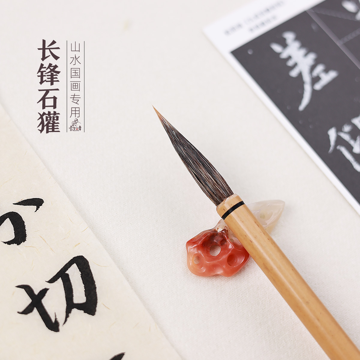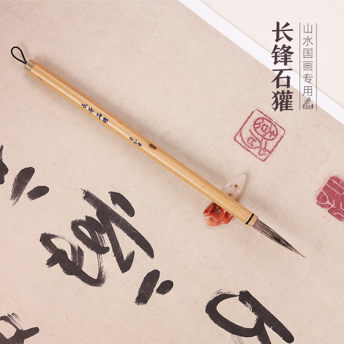 曹如章长峰石獾毛笔山水国画写意专用硬毫散锋笔刷山石中国画毛笔