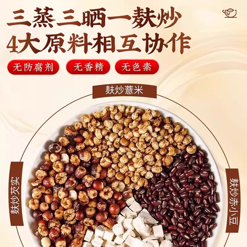 炒熟赤小豆薏米茯苓茶芡实祛湿气茶三蒸三晒红豆水养生正品炒薏米