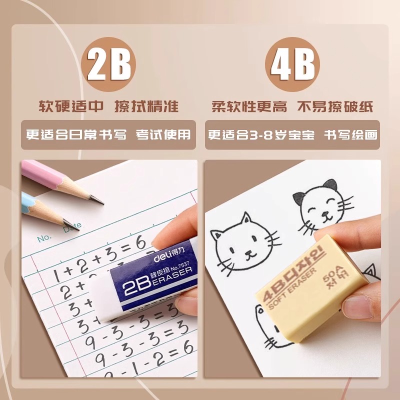 4b橡皮擦小学生专用素描无屑橡皮不留痕超干净儿童擦得干净幼儿园美术生专用2B像皮擦铅笔擦字成线象皮擦相皮