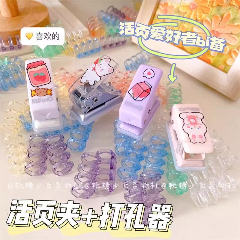 马卡龙色系4孔活页扣环diy自制线圈可拆卸装订成册神器装订条夹子
