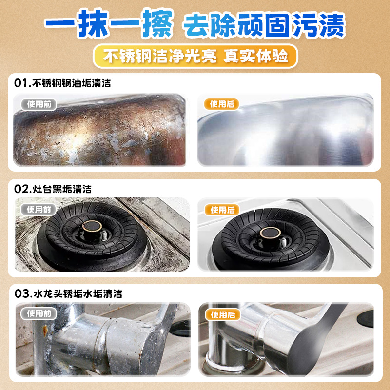 不锈钢清洁膏去除污垢除锈锅去烧焦污渍厨房擦洗锅油污清洁剂兔力