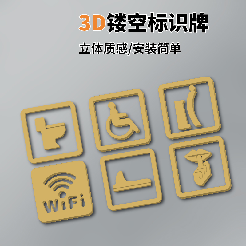 古铜金立体创意标识牌洗手间蹲便坐便马桶标志牌卫生间小便池提示牌母婴室淋浴房浴室小心地滑碰头台阶墙贴纸