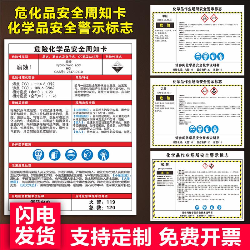危险化学品安全周知卡管理告知卡燃气告知牌物质职业危害告知警示牌定制油漆盐酸硫酸硝酸氢氧化钠标志标识贴
