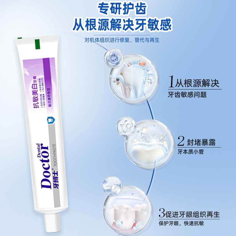牙博士抗敏美白牙膏舒缓修护牙齿不适洁齿去渍清新口气不含氟牙膏