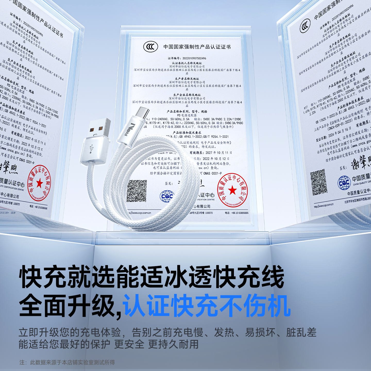 【正品冰透线】能适原装适用华为充电线100W快充线超级快充华为手机vivo小米oppo数据线安卓充电线Tpyec-c