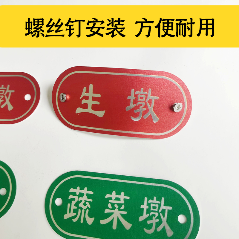 4D厨房管理不锈钢盆标识食堂色标贴幼儿园菜墩砧板分类生熟标识牌