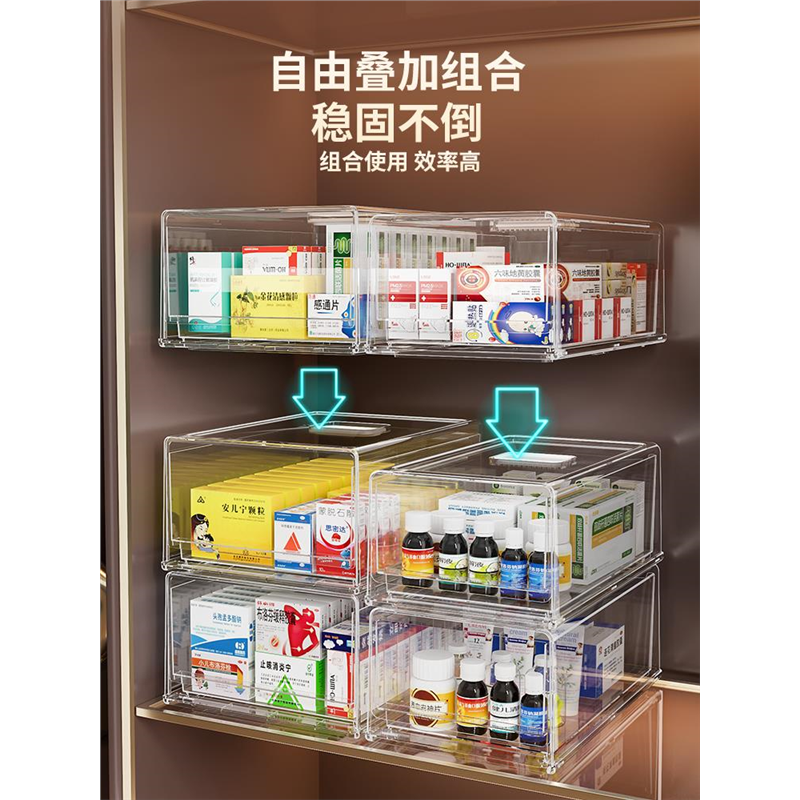 抽屉式药物收纳盒医药箱家庭装大号药品急救药盒收纳箱透明多层
