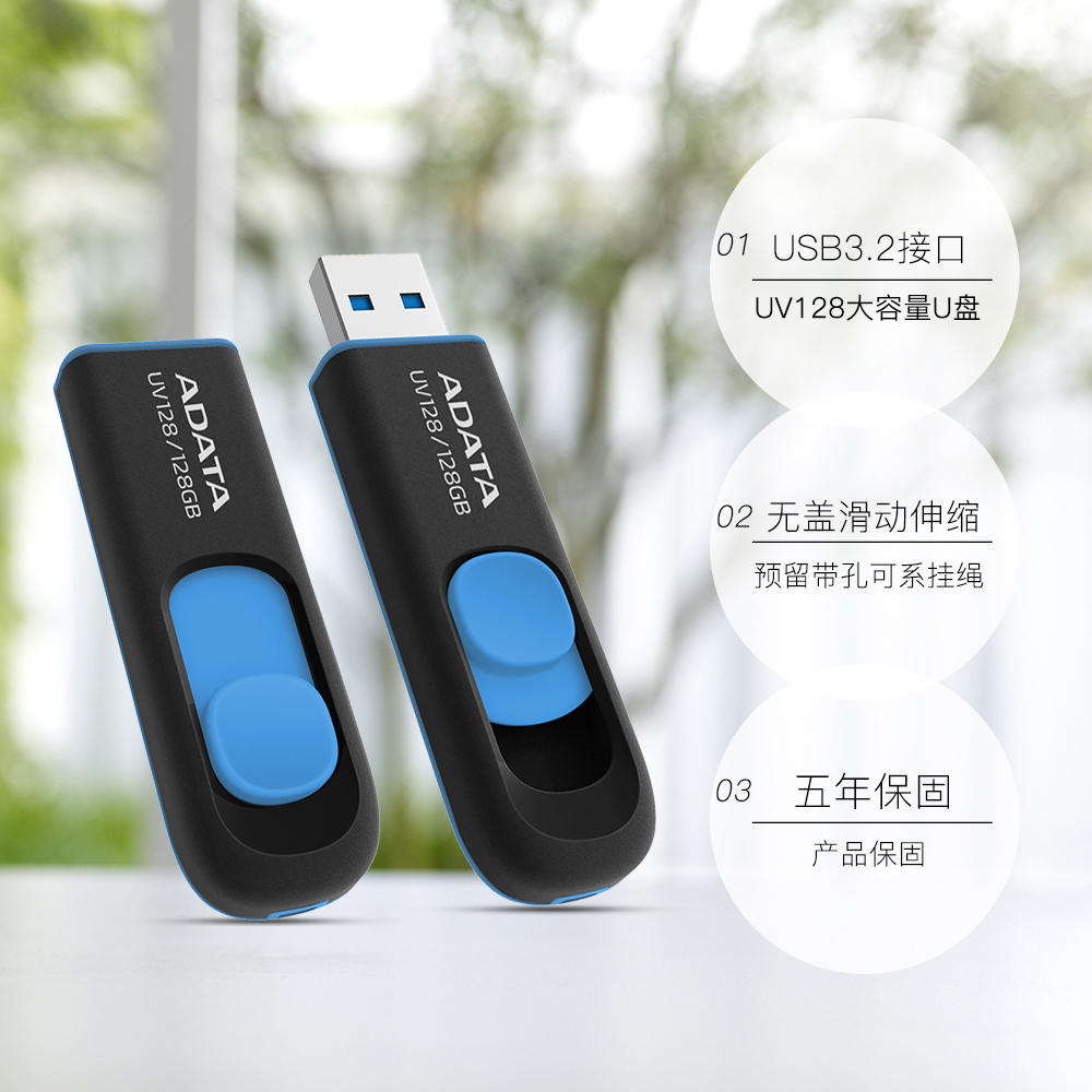 【自营】威刚UV128大容量U盘128G优盘USB3.2高速闪存盘车载办公
