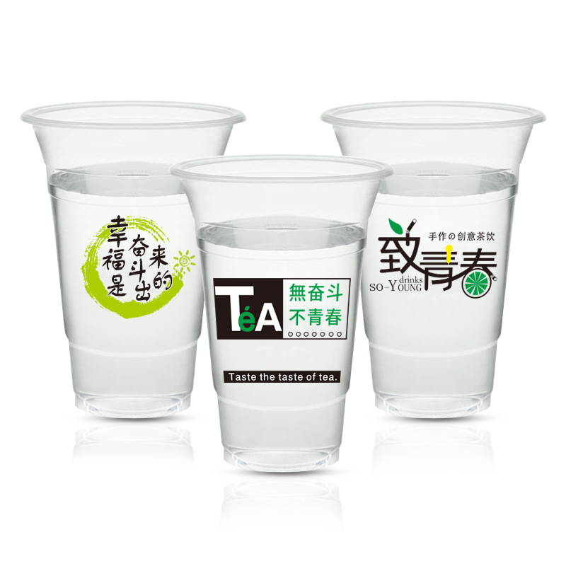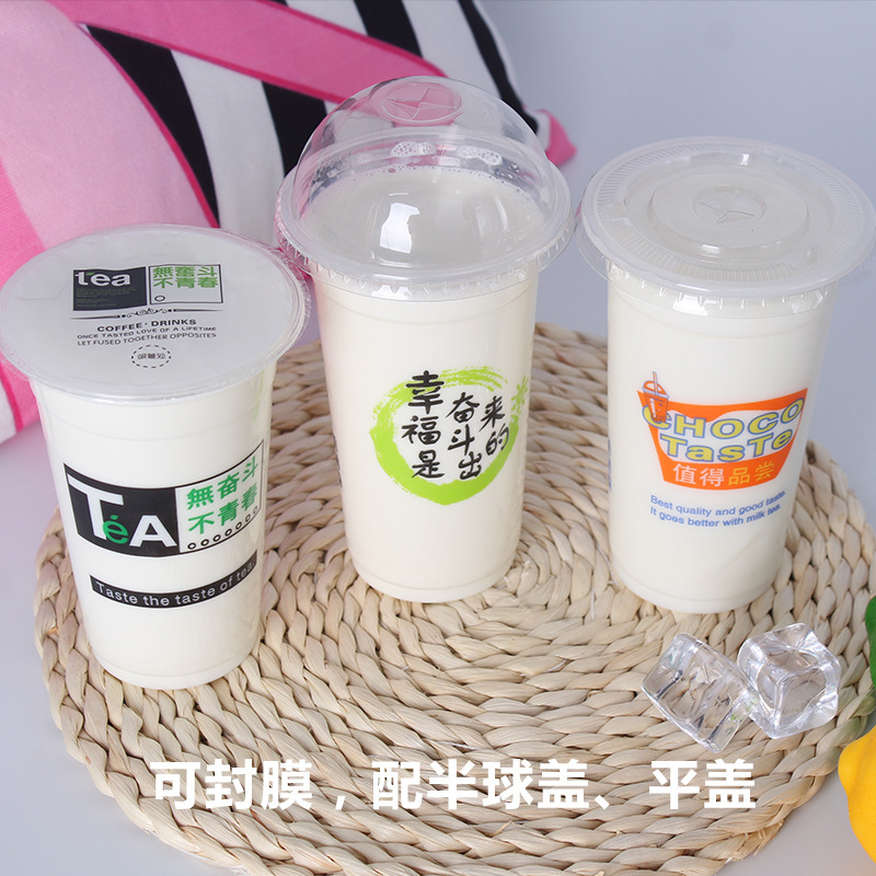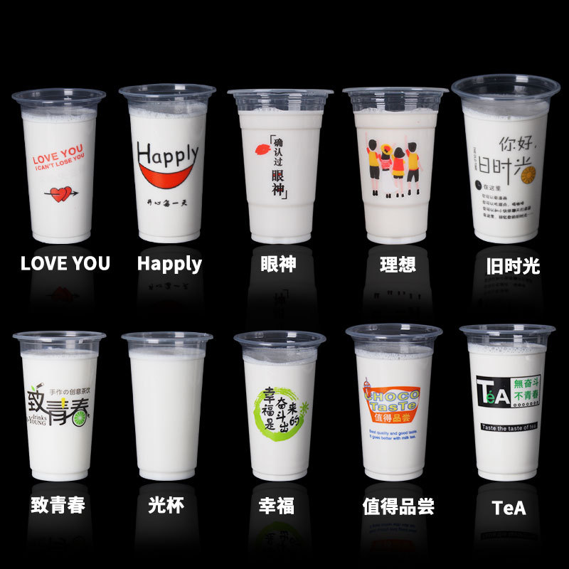95口径一次性奶茶杯透明塑料杯饮料果汁豆浆可印刷logo360-700ml