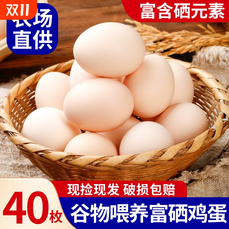新鲜农家散养富硒土鸡蛋鸡蛋40枚现发整箱包邮营养谷物蛋农场包赔