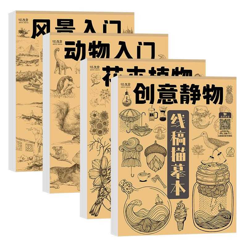 直销新款动物花卉风景线稿描摹本 恐龙植物创意静物入门技法画画