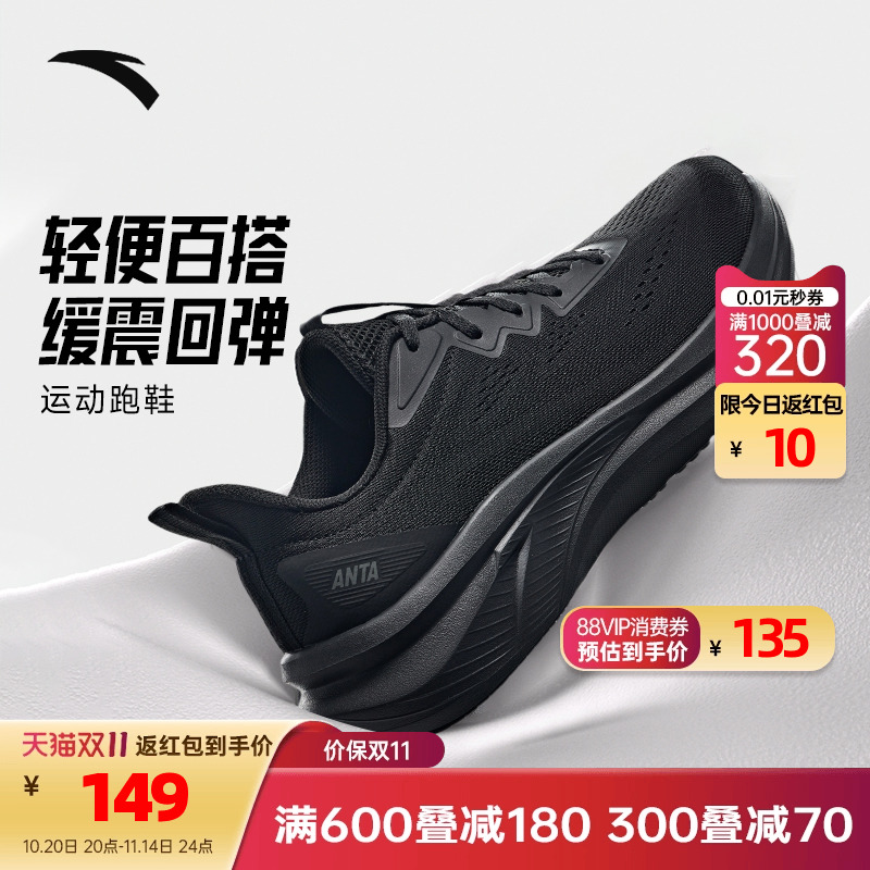 安踏男鞋跑鞋轻便运动鞋男秋季新款透气减震官方正品黑色跑步鞋子