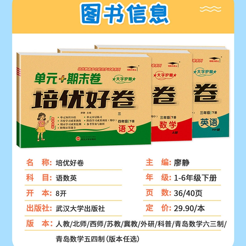 2024版培优好卷一年级二年级三四五六年级下册青岛版六三学制五四学制语文数学英语同步练习测试卷综合训练单元期中期末卷山东专版