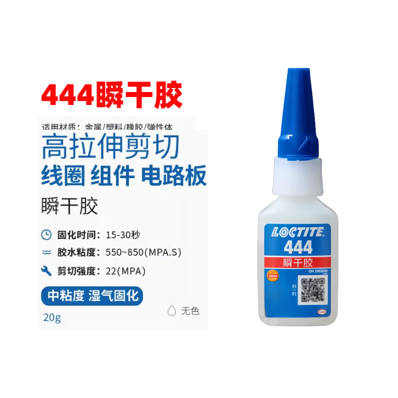 乐泰444胶水电子瞬干胶湿气固化透明中等粘度电子产品胶粘剂汉高loctite粘接线圈成型调节移动组件电路板加固