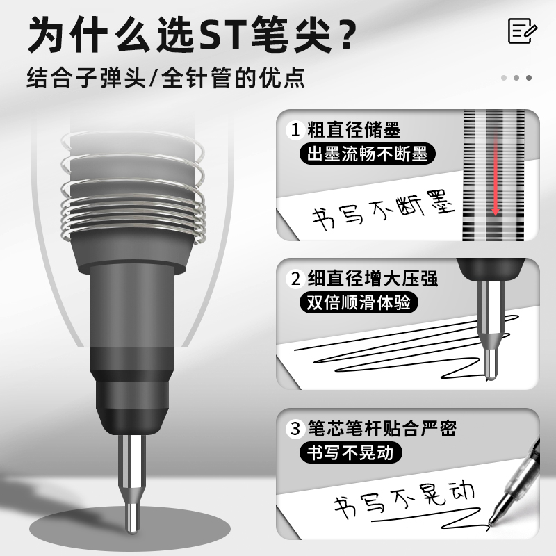 ST刷题笔高颜值按动中性笔圆珠笔黑色水笔小学生专用考试0.5速干碳素笔水性黑笔按压式做笔记签字笔非按斤卖