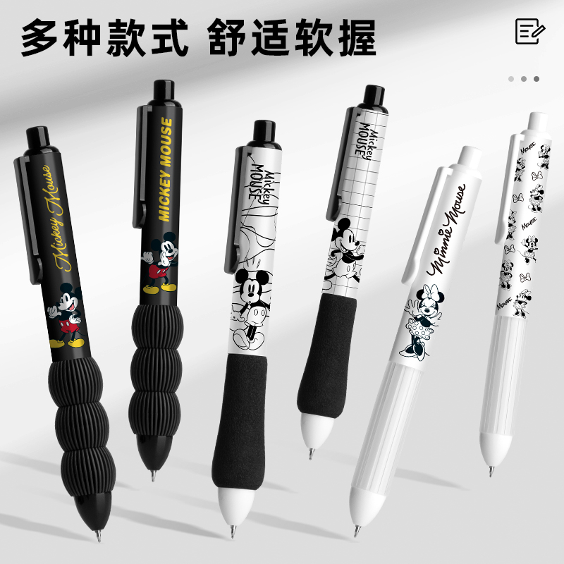 米奇米妮按动中性笔学生用ins高颜值刷题笔考试签字笔碳素水笔速干云握学生顺滑耐用可擦晶蓝