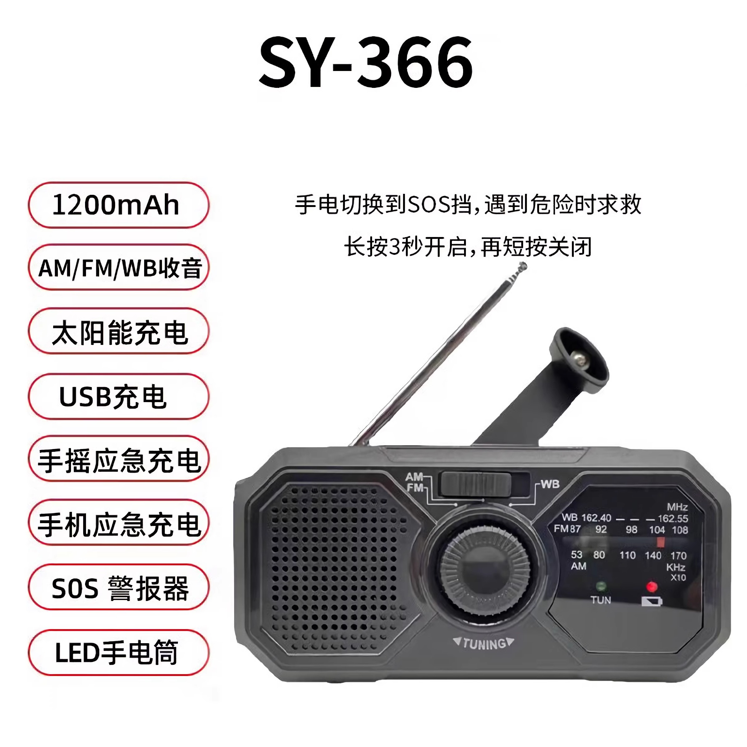 Sayin SY-366 应急收音机DSP多功能太阳能手摇发电手电筒充电宝
