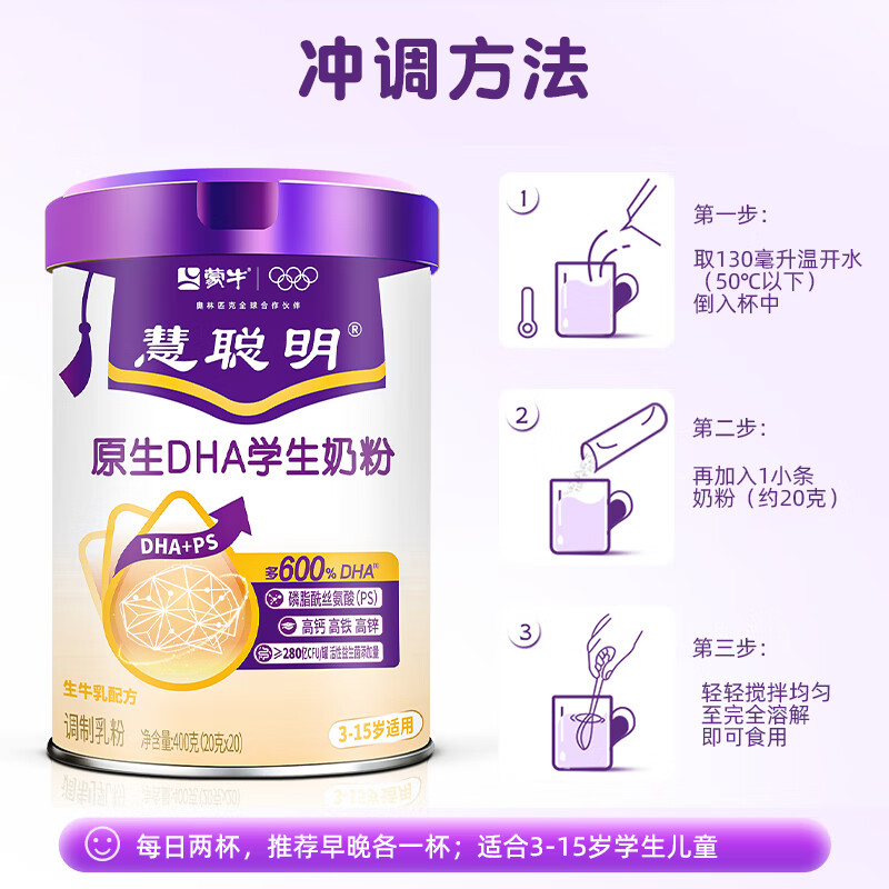 蒙牛DHA学生奶粉高钙高锌记忆脑力青少年儿童成长牛奶正品增强补