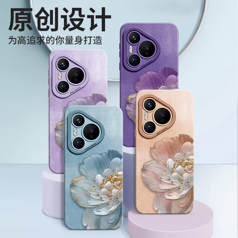 苏绣牡丹适用华为pura80手机壳pura70pro新款p80镜头pro十全包女ultra防摔p60pro硅胶p50软壳p40小众pro的pr0